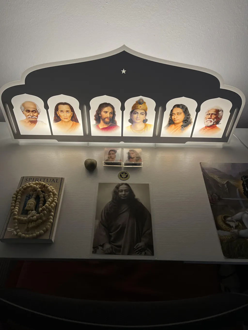 Received such a blessing when I purchased this beautifully crafted altar of the SRF Gurus. Love how it illuminates and is dimmable and brings me great joy.