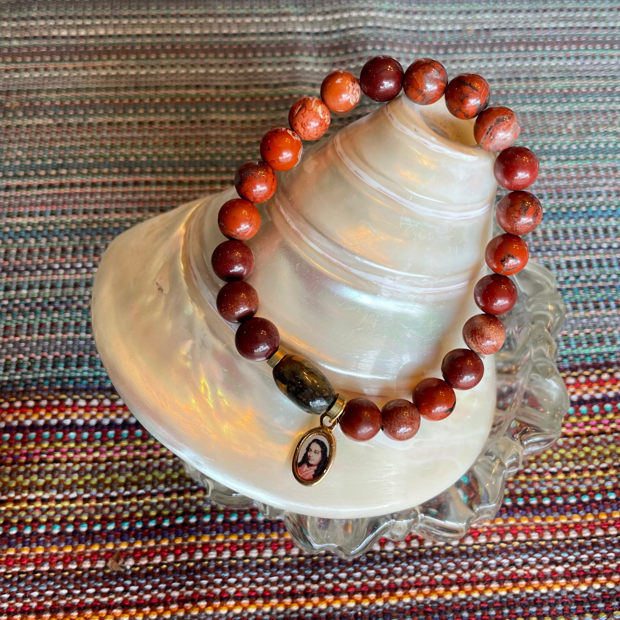 I love wearing a Mala bracelet with a charm of Paramahansa Yogananda's picture. It is not only beautiful and pretty to wear , but I can keep count of my Kriya and have my beloved Guru with me. I am so happy with this bracelet. Thank you!